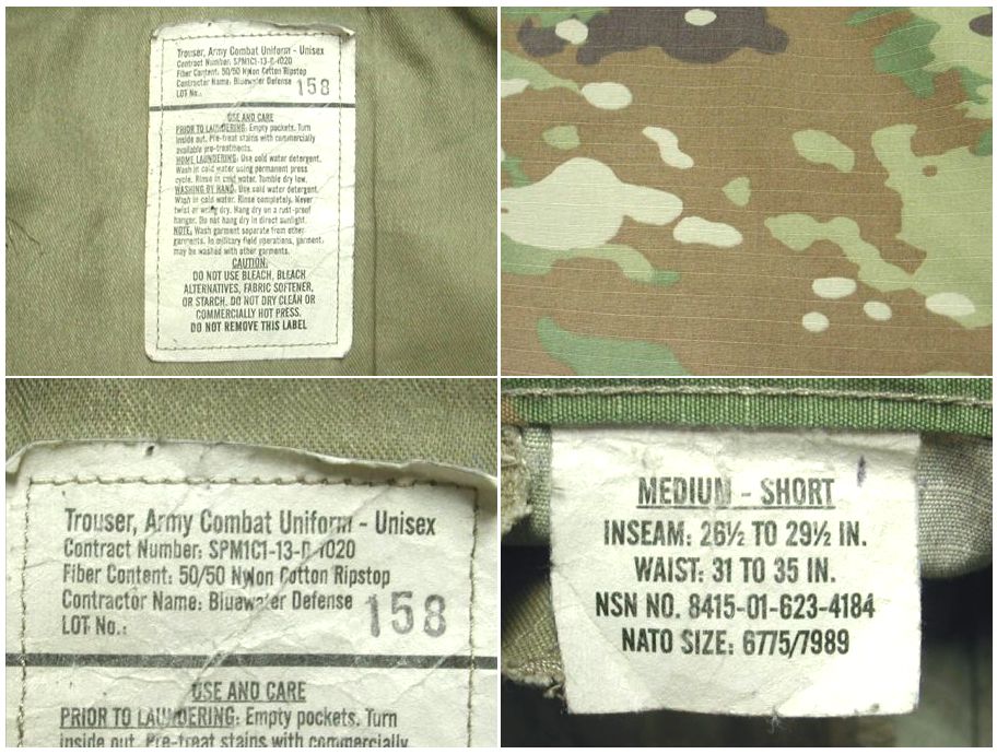 2013年製 US ARMY マルチカム フィールドパンツです。SPM1C1-13-D-1020 リップストップ 素材はコットン50% ナイロン50%になります。着用感はありますが、特に目立ったダメージはありません。