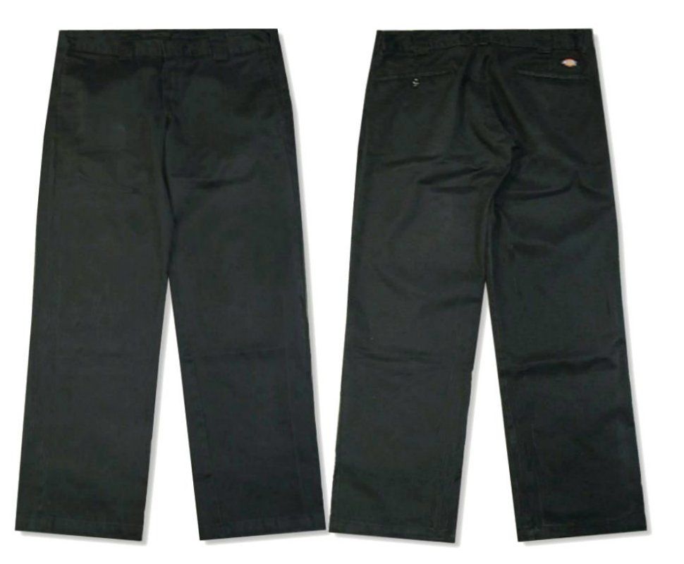 ディッキーズ 874 ワークパンツです。カラーはブラックで素材はポリエステル65% コットン35%になります。状態は良好で特に目立ったダメージはありません。