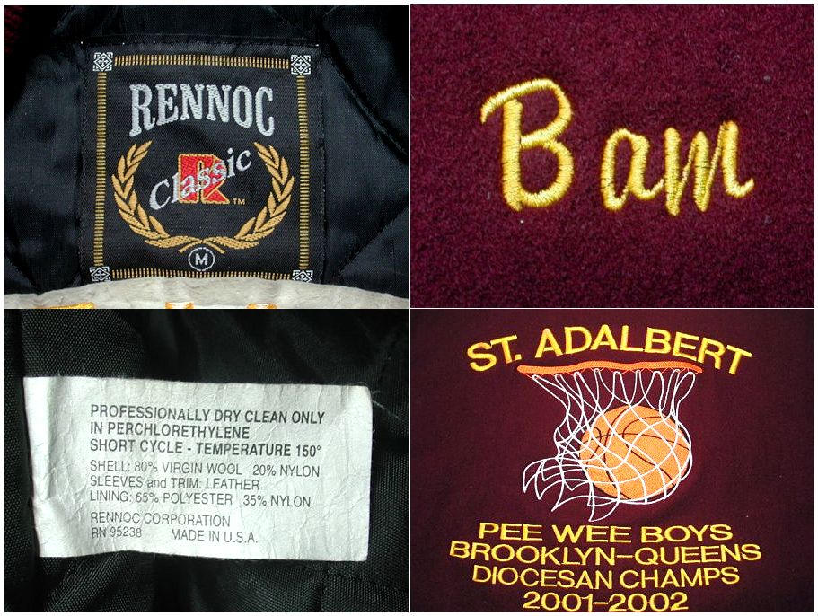 2000年初期 RENNOC スタジャンです。MADE IN USA カラーはエンジで素材はメルトンウールになります。着用感はありますが、特に目立ったダメージはありません。