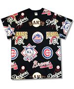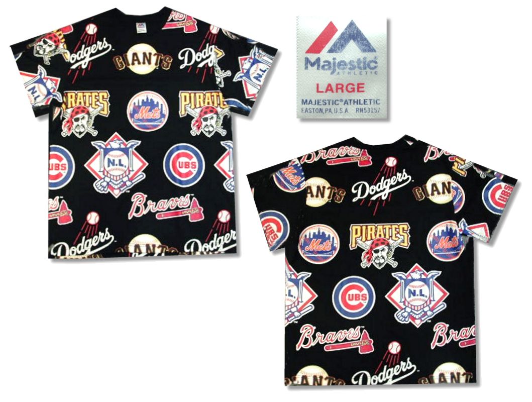 Mjestic MLB総柄 Tシャツです。カラーはブラックで素材はコットン60% ポリエステル40%になります。状態は良好で特に目立ったダメージはありません。