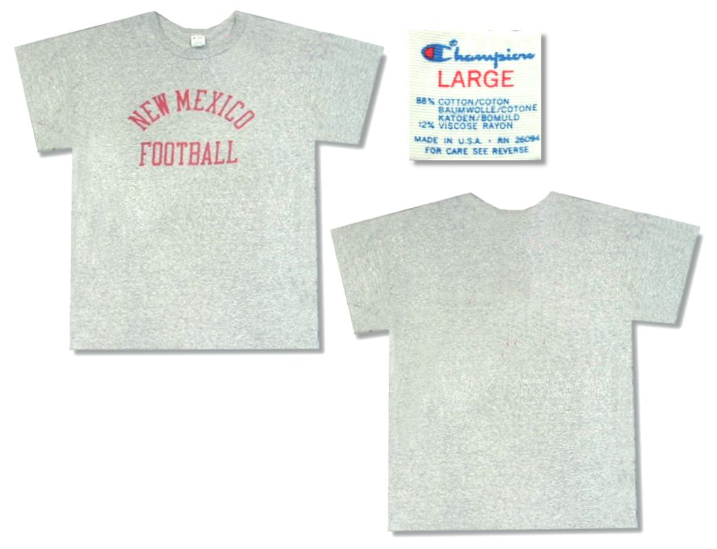 1980年代製 チャンピオン NEW NEXICO FOOTBALL 2段染込プリント Tシャツです。MADE IN USA シングルステッチ カラーはグレーの霜降りで素材はコットン88%