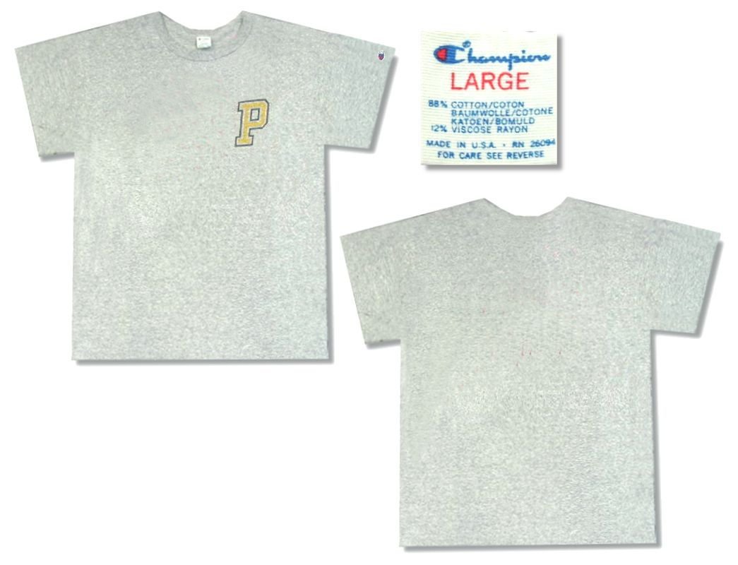 1980年代製 チャンピオン 染込プリント Tシャツです。MADE IN USA シングルステッチ カラーはグレーの霜降りで素材はコットン88%