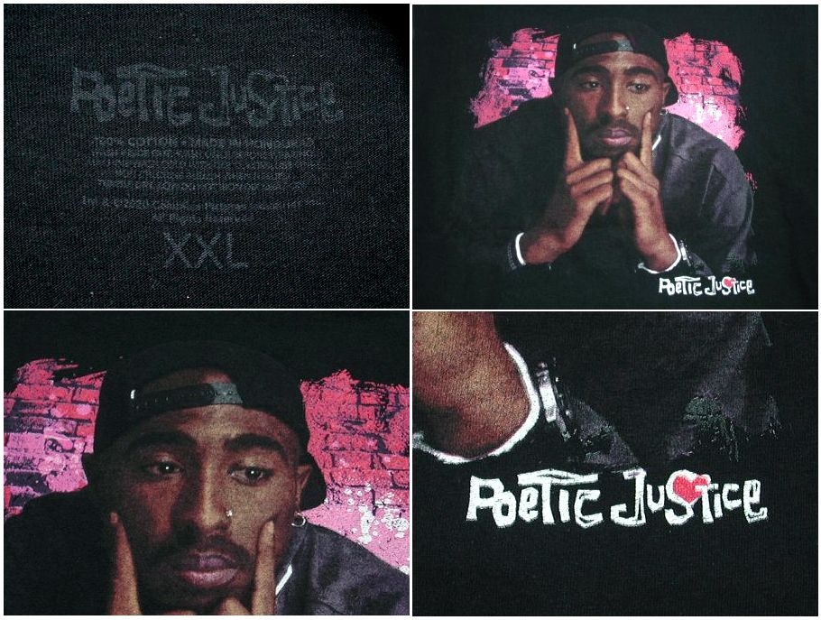 ポエティック・ジャスティス Tシャツです。カラーはブラックで素材はコットン100%になります。着用感はありますが、特に目立ったダメージはありません。