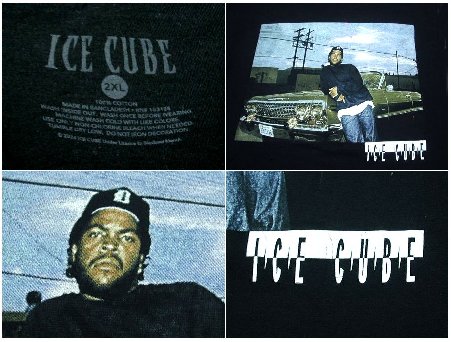 アイス・キューブ Tシャツです。カラーはブラックで素材はコットン100%になります。着用感はありますが、特に目立ったダメージはありません。