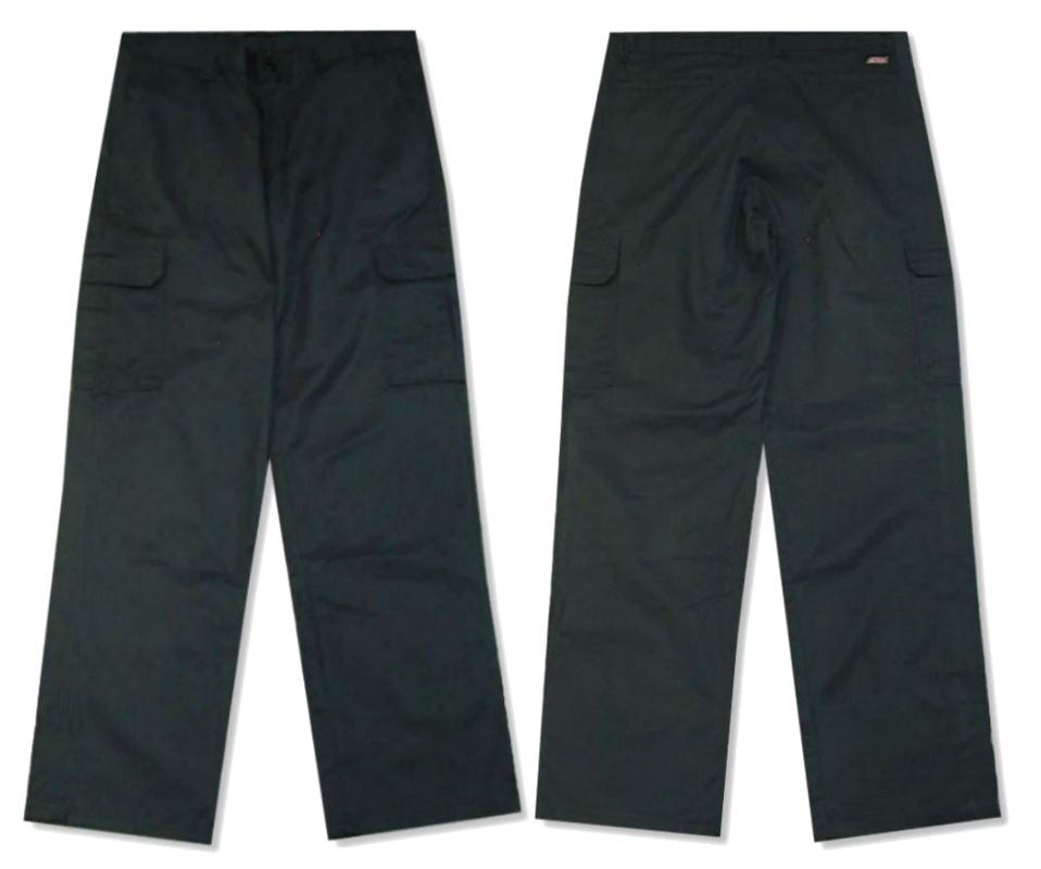 ディッキーズ カーゴパンツです。カラーはブラックで素材はコットン35% ポリエステル65%になります。若干スレがありますが、特に目立ったダメージはありません。