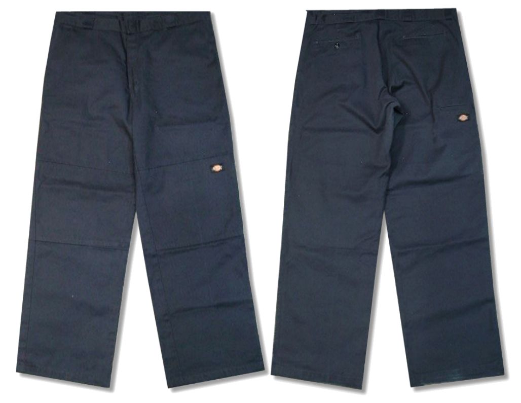 ディッキーズ ダブルニー ワークパンツです。カラーはネイビーで素材はポリエステル65% コットン35%になります。着用感はありますが、特に目立ったダメージはありません。