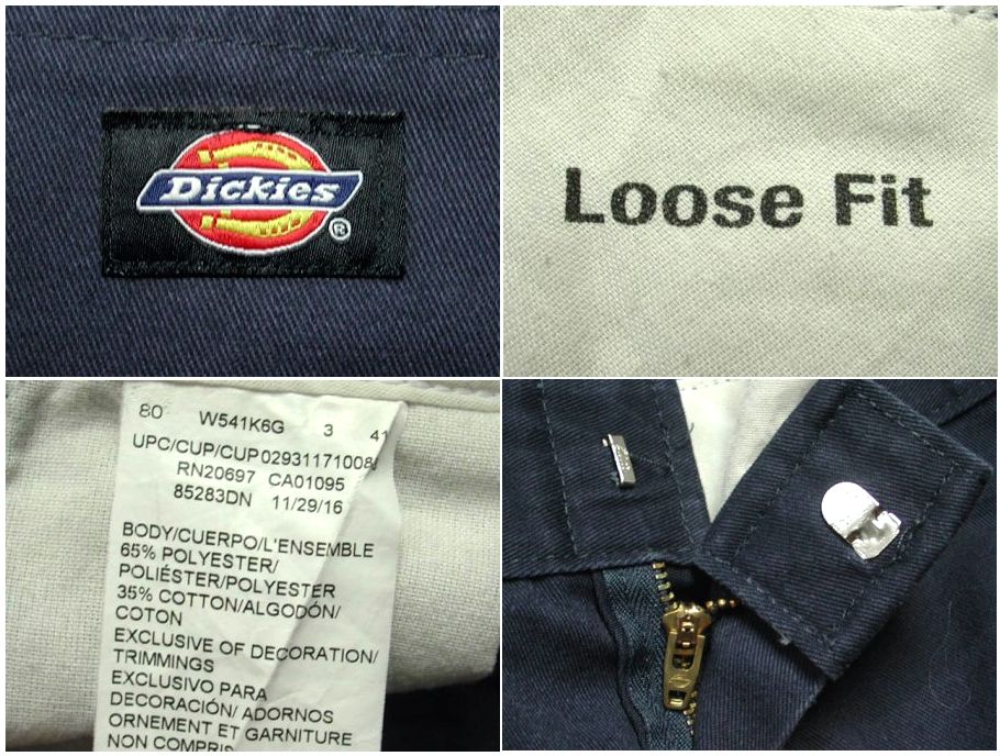 ディッキーズ 874FLEX ワークパンツです。カラーはネイビーで素材はポリエステル65% コットン35%になります。着用感はありますが、特に目立ったダメージはありません。