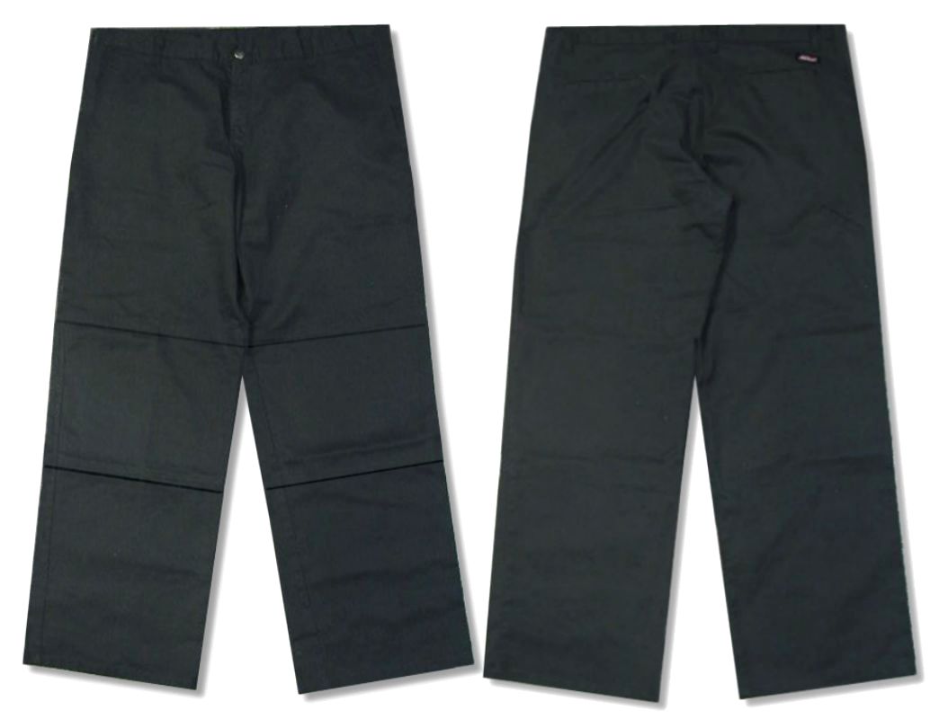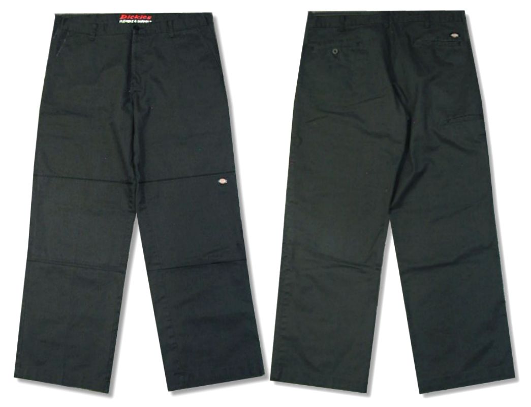 ディッキーズ ダブルニー ワークパンツです。カラーはブラックで素材はポリエステル65% コットン35%になります。着用感はありますが、特に目立ったダメージはありません。
