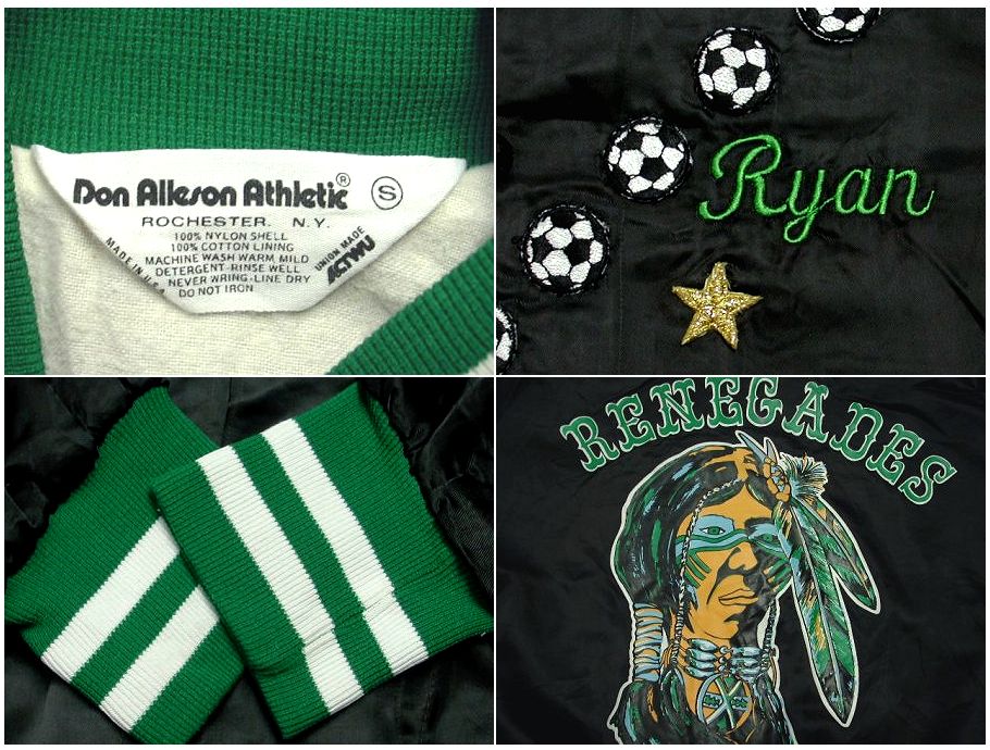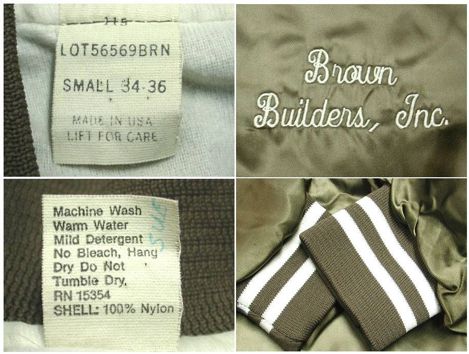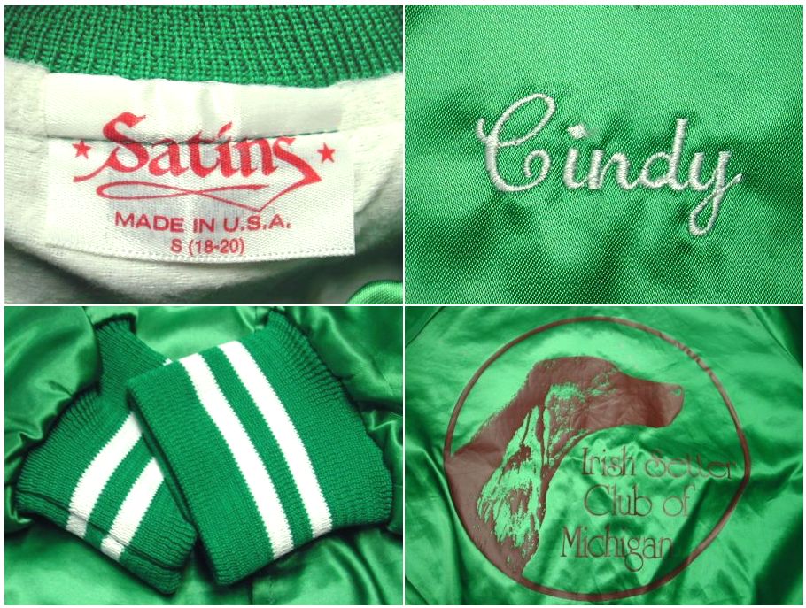 1990年代製 Satins ナイロンスタジャンです。MADE IN USA カラーはグリーンで素材はナイロン100%になります。着用感はありますが、特に目立ったダメージはありません。