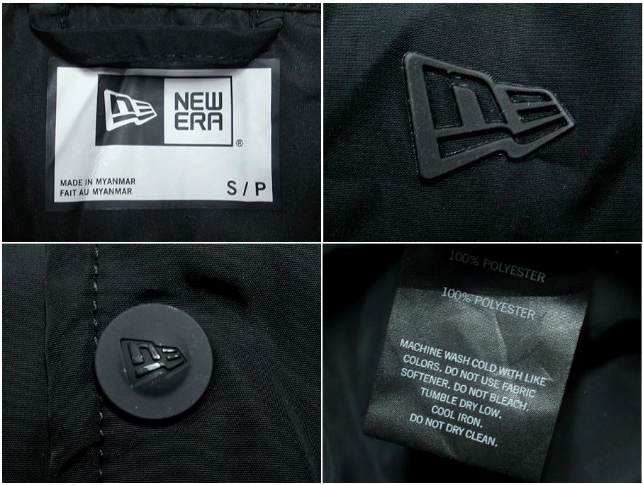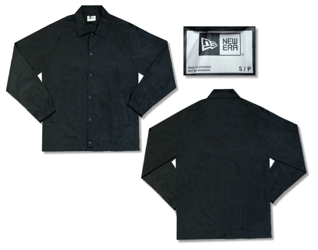 ニューエラ コーチジャケットです。カラーはブラックで素材はポリエステル100%になります。着用感はありますが、特に目立ったダメージはありません。