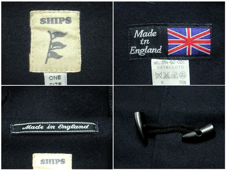 シップス ショート丈 ダッフルコートです。MADE IN ENGLAND カラーは濃紺になります。着用感はありますが、特に目立ったダメージはありません。