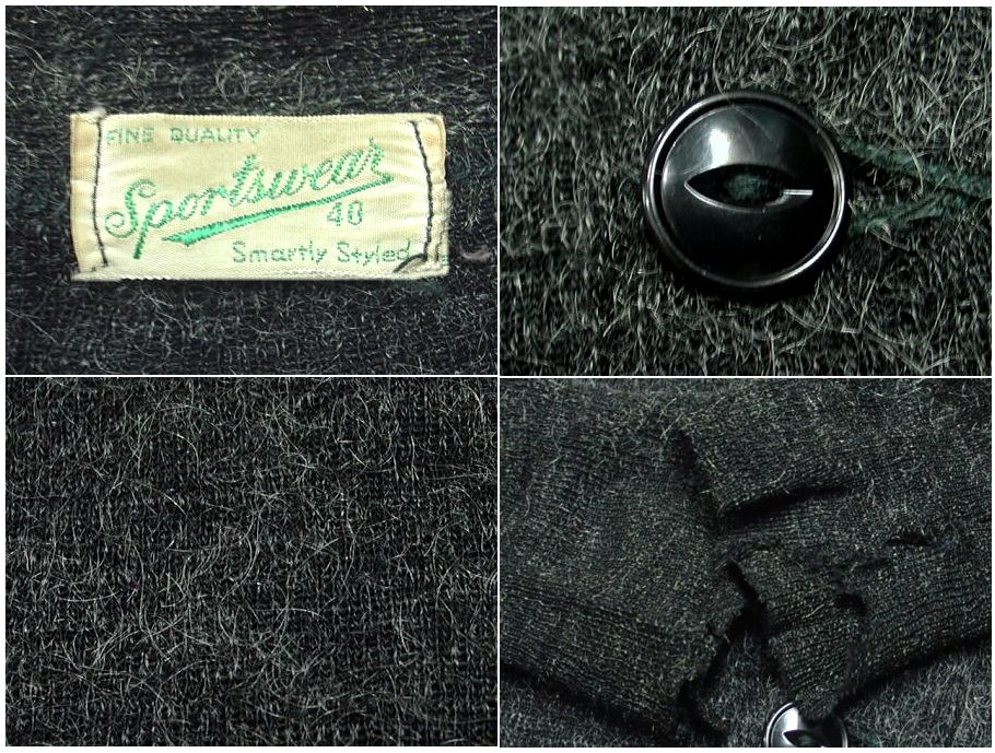 VINTAGE 1950年代製 Sportswear カーディガンです。カラーはブラックベースで素材はアクリル100%になります。両袖口にホツレがあります。サイズ表記は40ですが、洗濯による縮みがありますので普段XSサイズを着用している方に丁度いいサイズ感です。