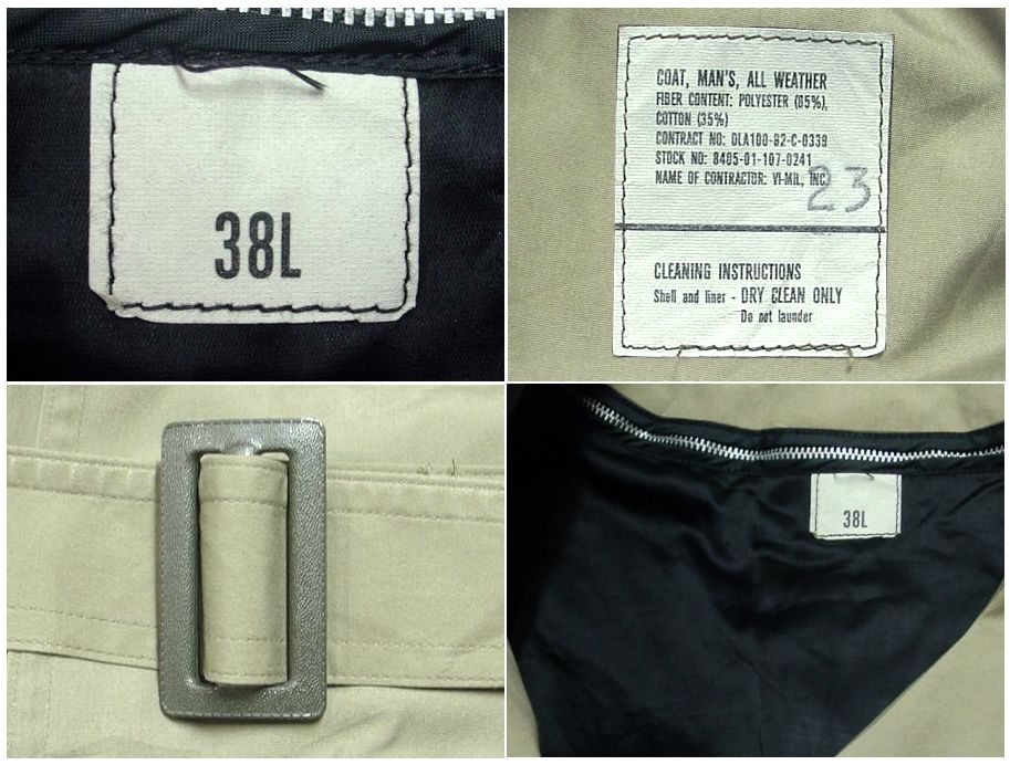 1980年代製 US ARMY オールウェザーコートです。DLA100-82-C-0339 カラーはベージュで素材はコットン35% ポリエステル65%になります。着脱可能なインナー付き。着用感はありますが、特に目立ったダメージはありません。