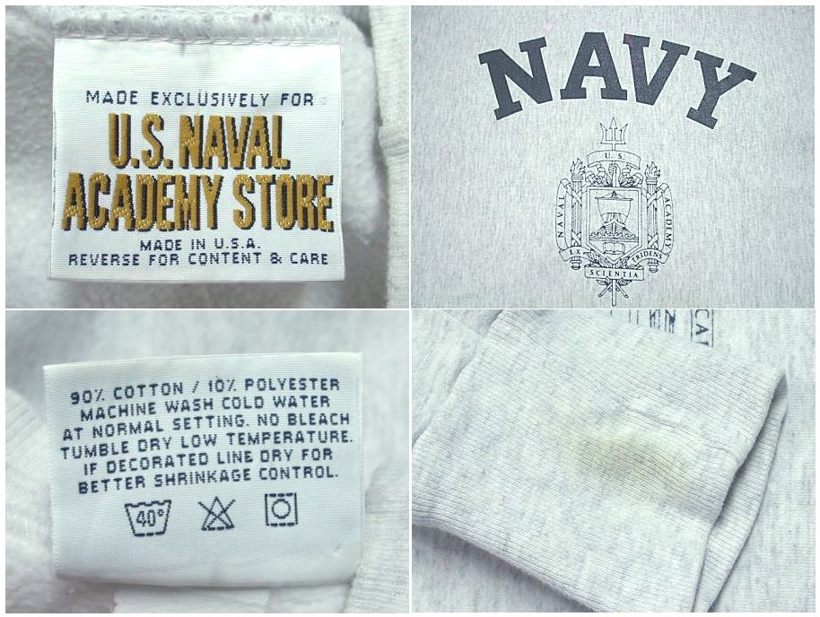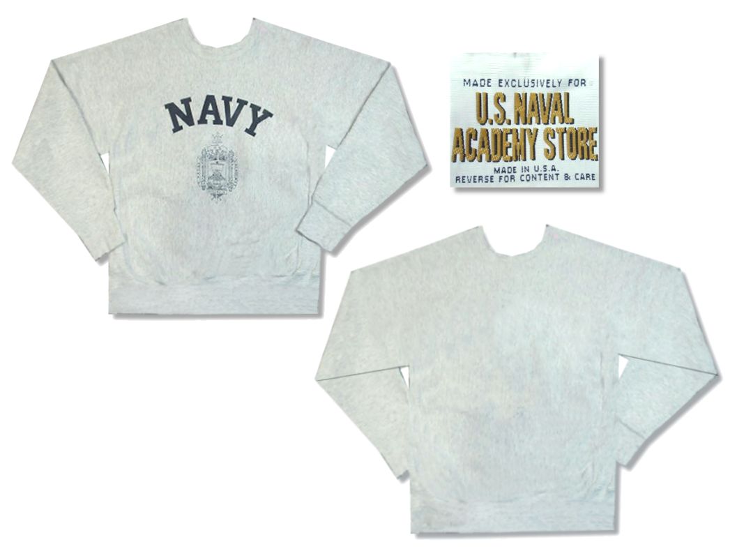 1990年代製 US NAVAL ACADEMY STORE リバースウィーブタイプ スウェットです。MADE IN USA カラーはグレーの霜降りで素材はコットン90%