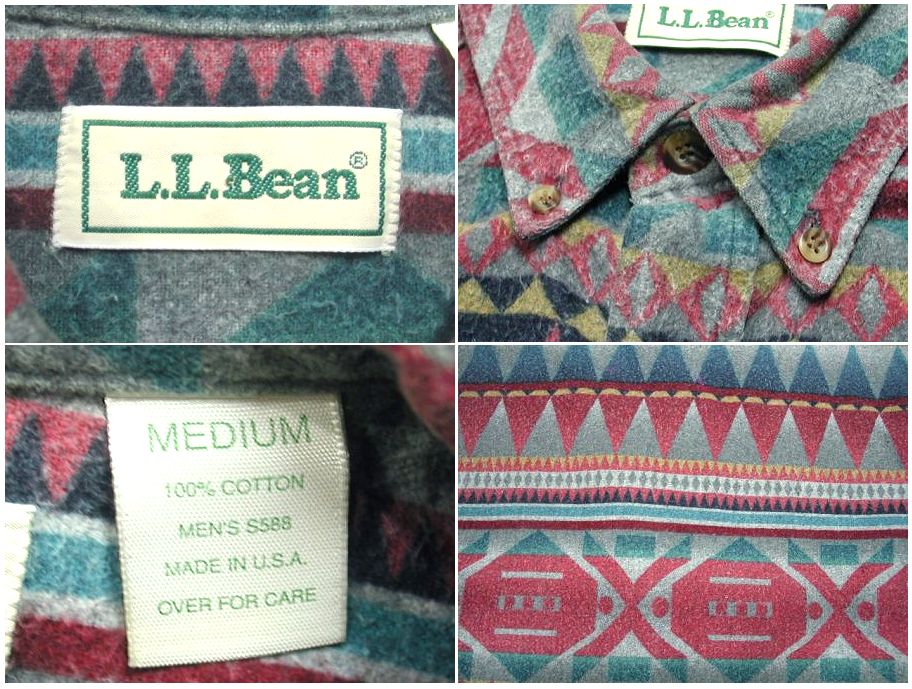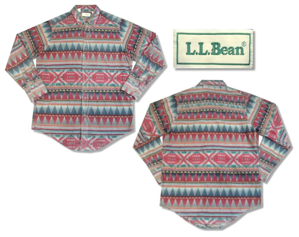 1990年代製 L L Bean ネイティブ柄 ネルシャツです。MADE IN USA 素材はコットン100% 着用感はありますが、特に目立ったダメージはありません。