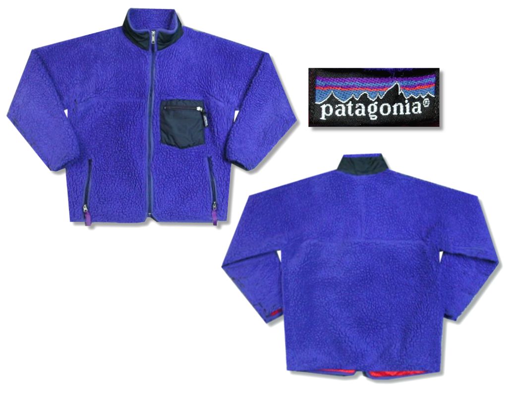 1990年製 パタゴニア レトロパイルカーディガンです。MADE IN USA 23021 F0 カラーはブルー×ブラック 両袖に毛抜けが御座いますが、特に目立った大きなダメージはありません。サイズ表記はMですが、普段Sサイズを着用している方に丁度いいサイズ感です。