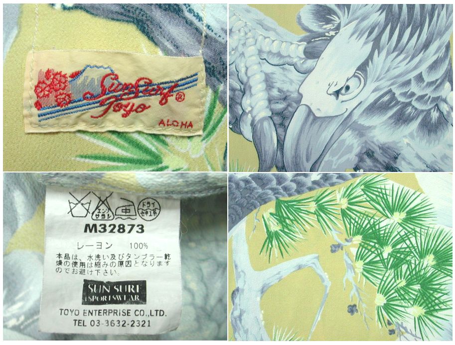 東洋エンタープライズ サンサーフ アロハシャツです。MADE IN JAPAN 素材はレーヨン100%になります。着用感はありますが、特に目立ったダメージはありません。