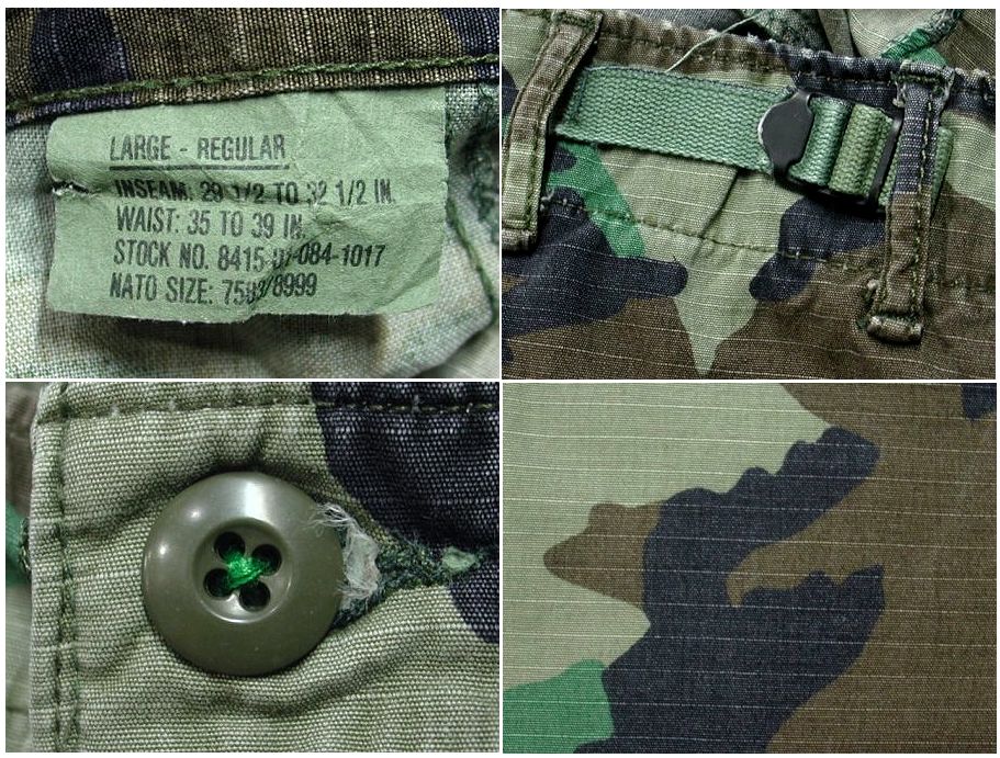 1990年代製 US ARMY ウッドランドカモ フィールドパンツです。RIPSTOP 素材はコットン50% ナイロン50%になります。着用感はありますが、特に目立ったダメージはありません。