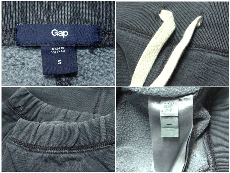 GAP スウェットパンツです。カラーはグレーで素材はコットン80% ポリエステル20%になります。着用感はありますが、特に目立ったダメージはありません。