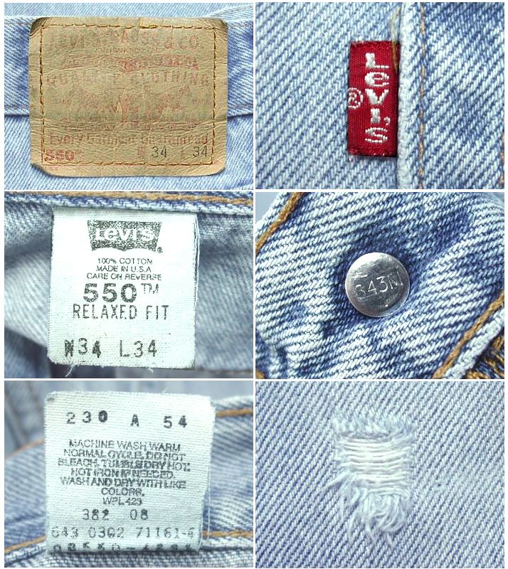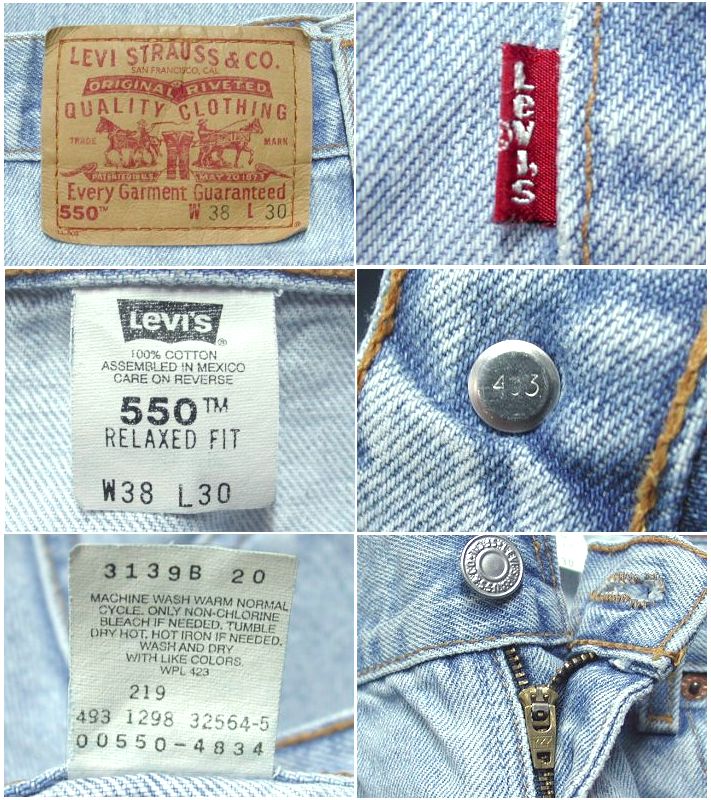 1998年製 Levi's 550 リラックスフィット ジーンズです。MADE IN MEXICO トップボタン裏の数字は493 着用感はありますが、特に目立ったダメージはありません。