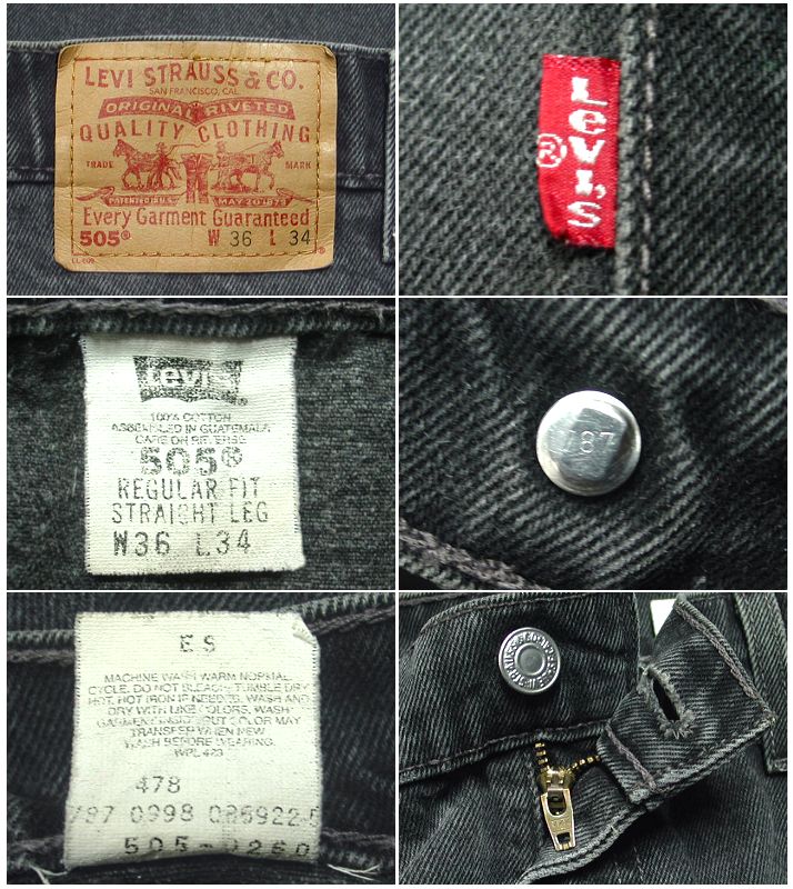 1990年代製 Levi's 505 先染ブラックジーンズです。グアテマラ製 トップボタン裏の数字は787 着用感はありますが、特に目立ったダメージはありません。