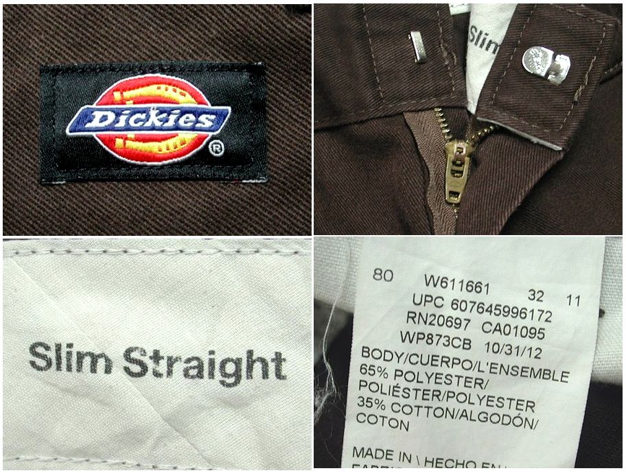 ディッキーズ ワークパンツです。カラーはブラウンで素材はコットン35% ポリエステル65%になります。着用感はありますが、特に目立ったダメージはありません。