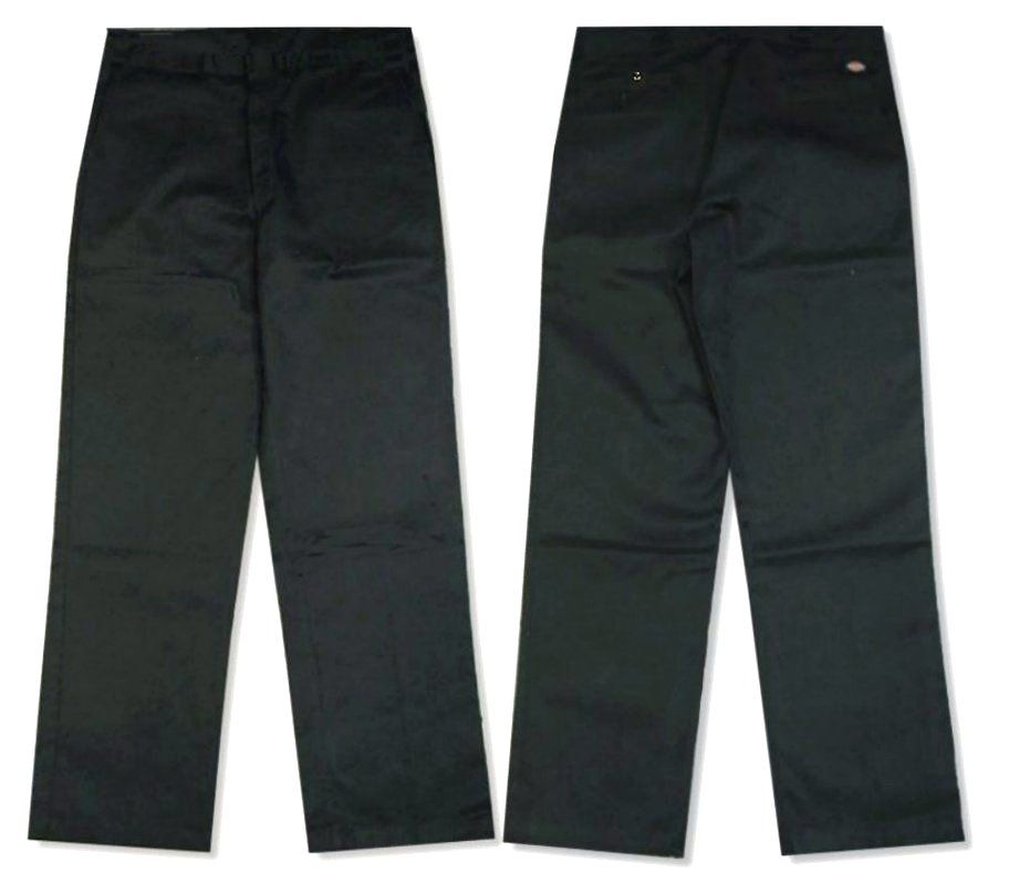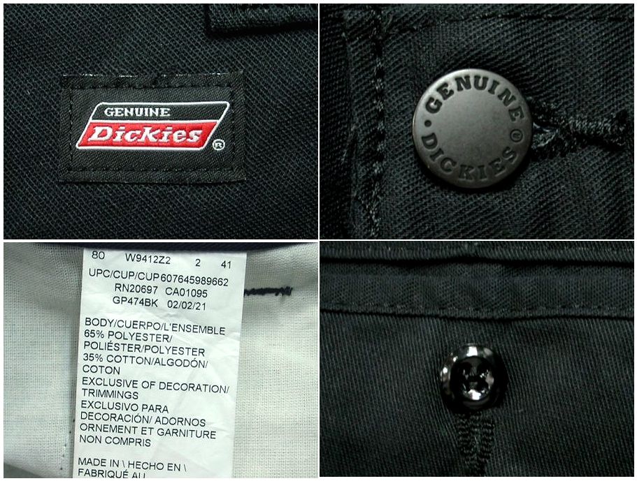 ディッキーズ ワークパンツです。カラーはブラックで素材はコットン35% ポリエステル65%になります。着用感はありますが、特に目立ったダメージはありません。