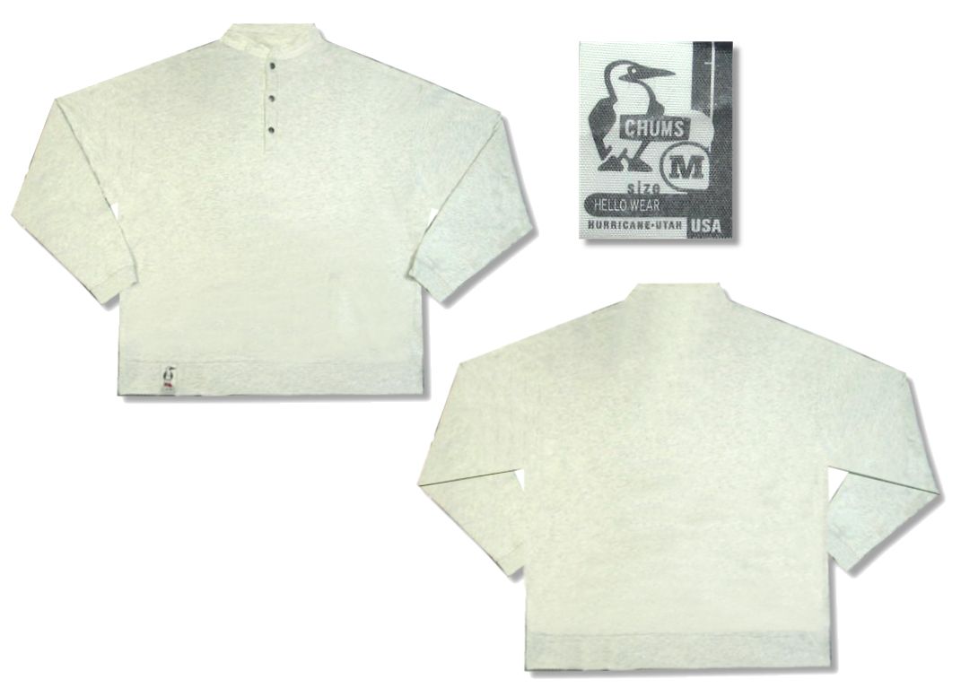 チャムス ヘンリーネック スウェットです。MADE IN USA カラーはナチュラルの霜降りで素材はコットン100%になります。着用感はありますが、特に目立ったダメージはありません。