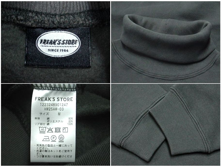 フリークスストア タートルネック スウェットです。カラーはグレーで素材はコットン80% ポリエステル20%になります。状態は良好で特に目立ったダメージはありません。