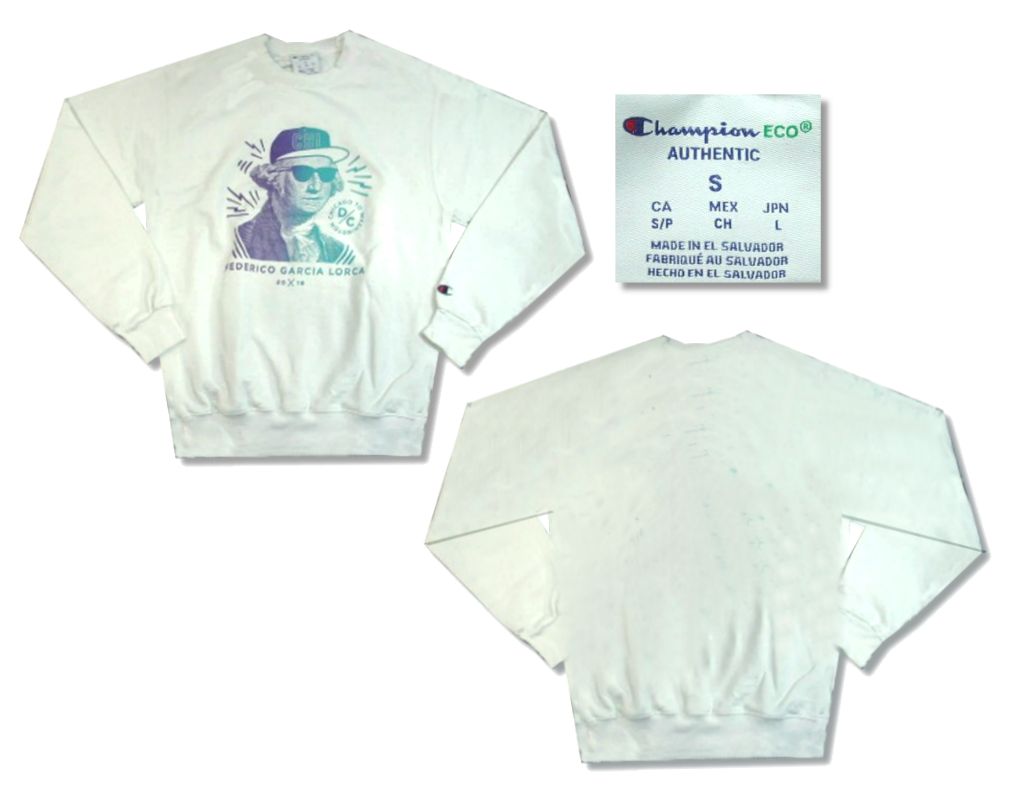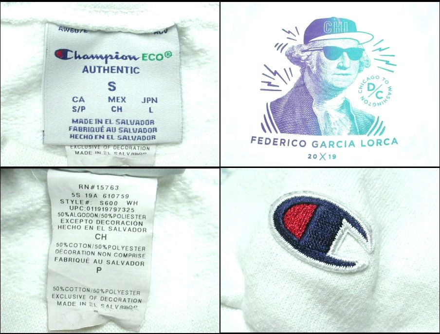 チャンピオン スウェットです。カラーはホワイトで素材はコットン50% ポリエステル50%になります。着用感はありますが、特に目立ったダメージはありません。