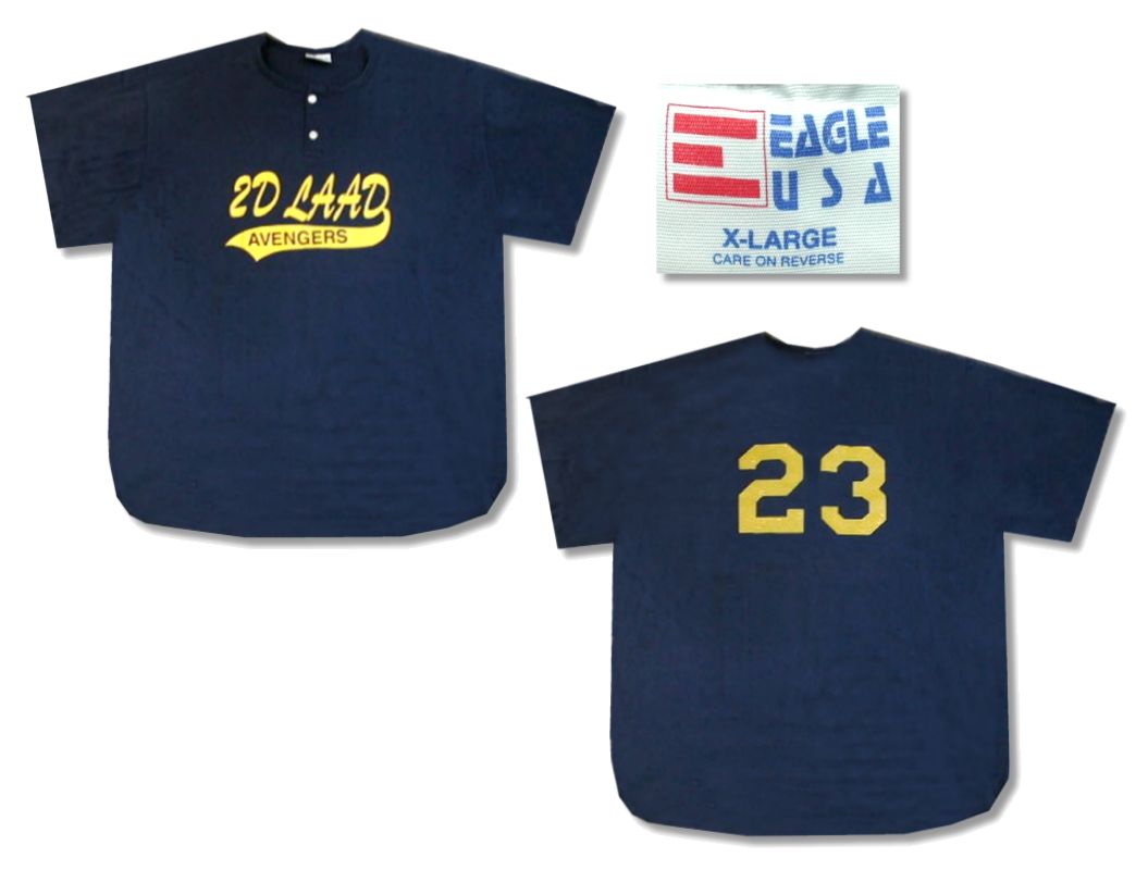 1990年代製 ヘンリーネック オールドTシャツです。MADE IN USA カラーはネイビーで素材はコットン50% ポリエステル50%になります。着用感はありますが、特に目立ったダメージはありません。