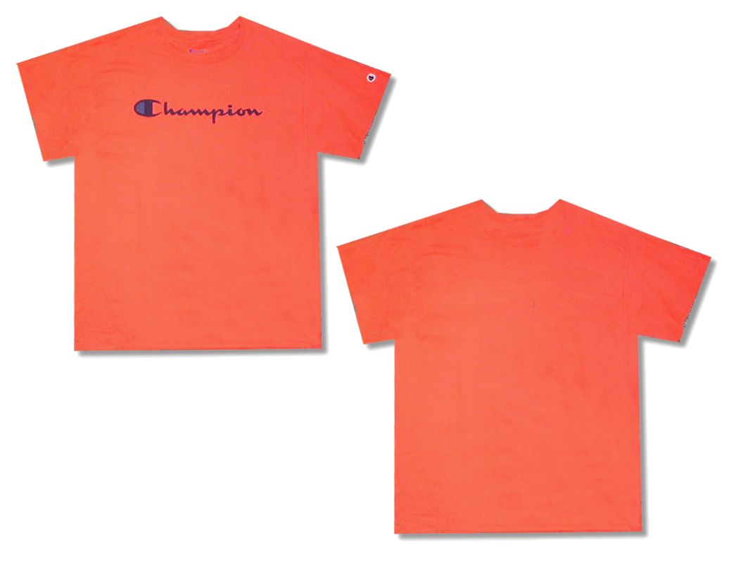 チャンピオン Tシャツです。カラーは朱色で素材はコットン100%になります。着用感はありますが、特に目立ったダメージはありません。