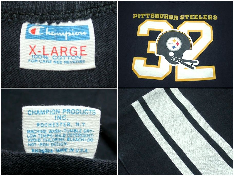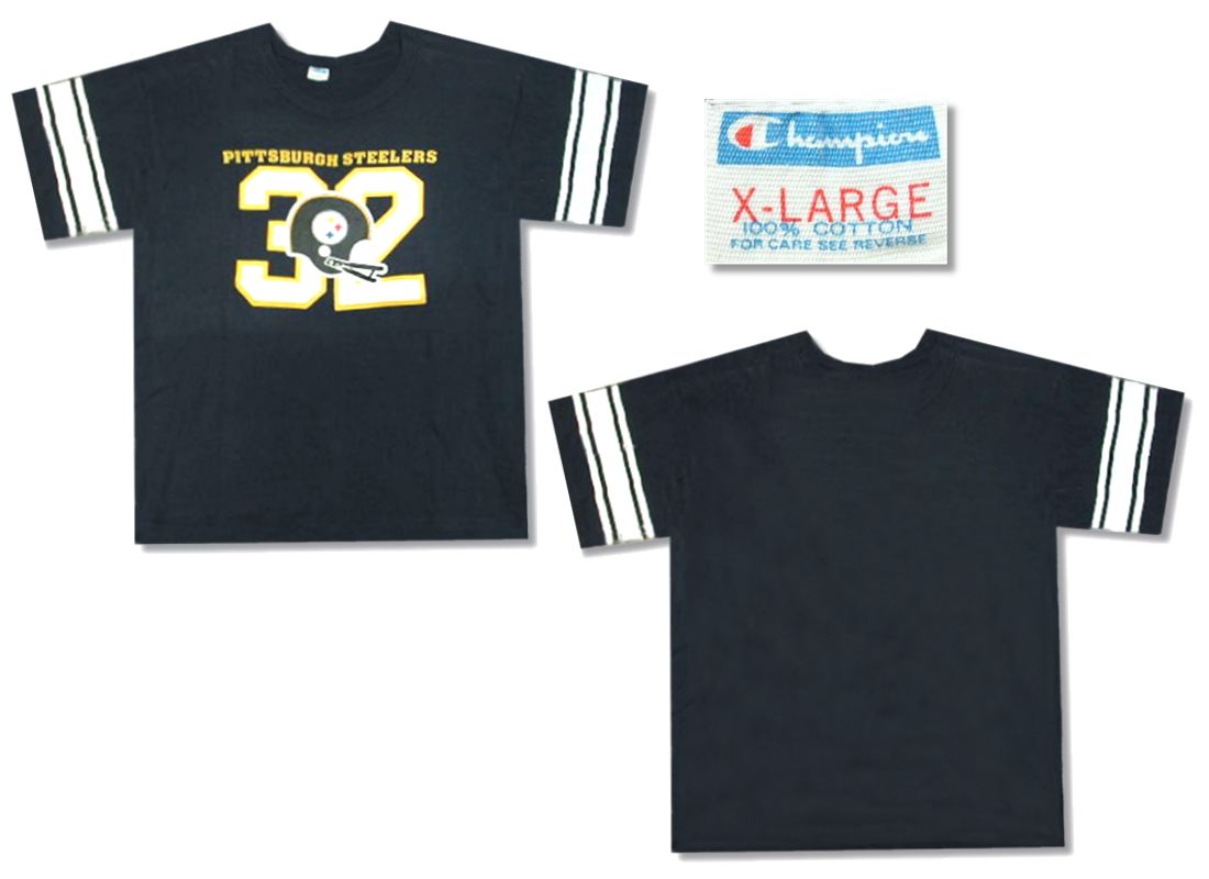 1970年代製 チャンピオン バータグ ピッツバーグスティーラーズ フットボールTシャツです。MADE IN USA カラーはブラックで素材はコットン100%になります。着用感はありますが、特に目立ったダメージはありません。