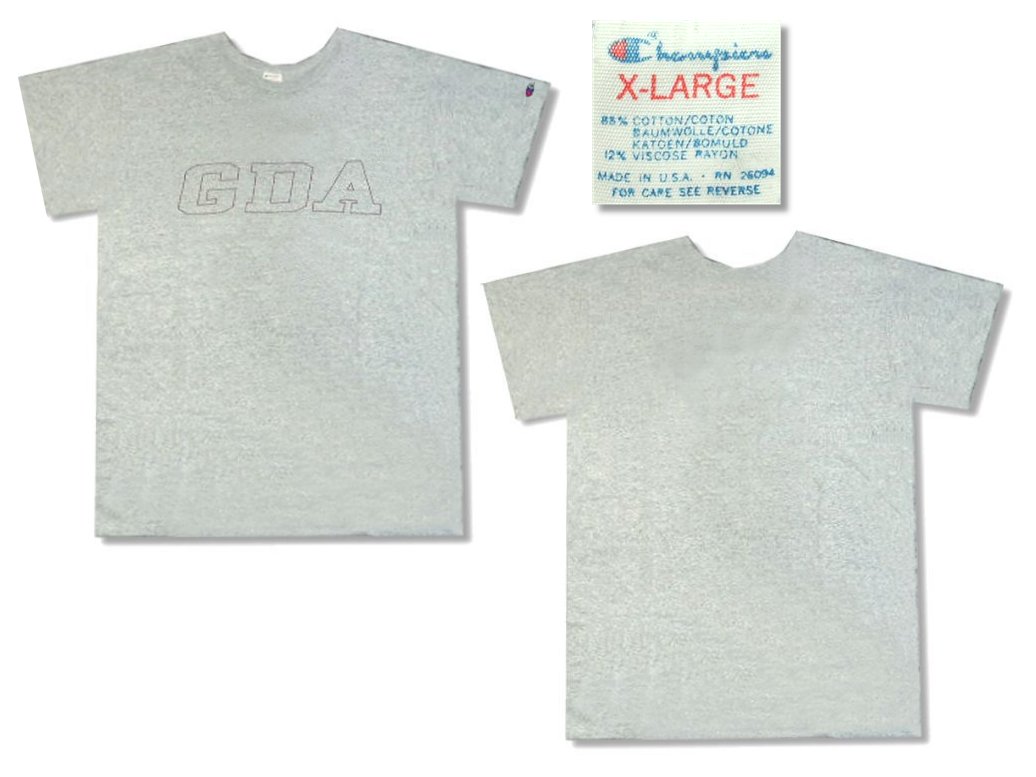 1980年代製 チャンピオン 染込プリント Tシャツです。MADE IN USA シングルステッチ カラーはグレーの霜降りで素材はコットン88%