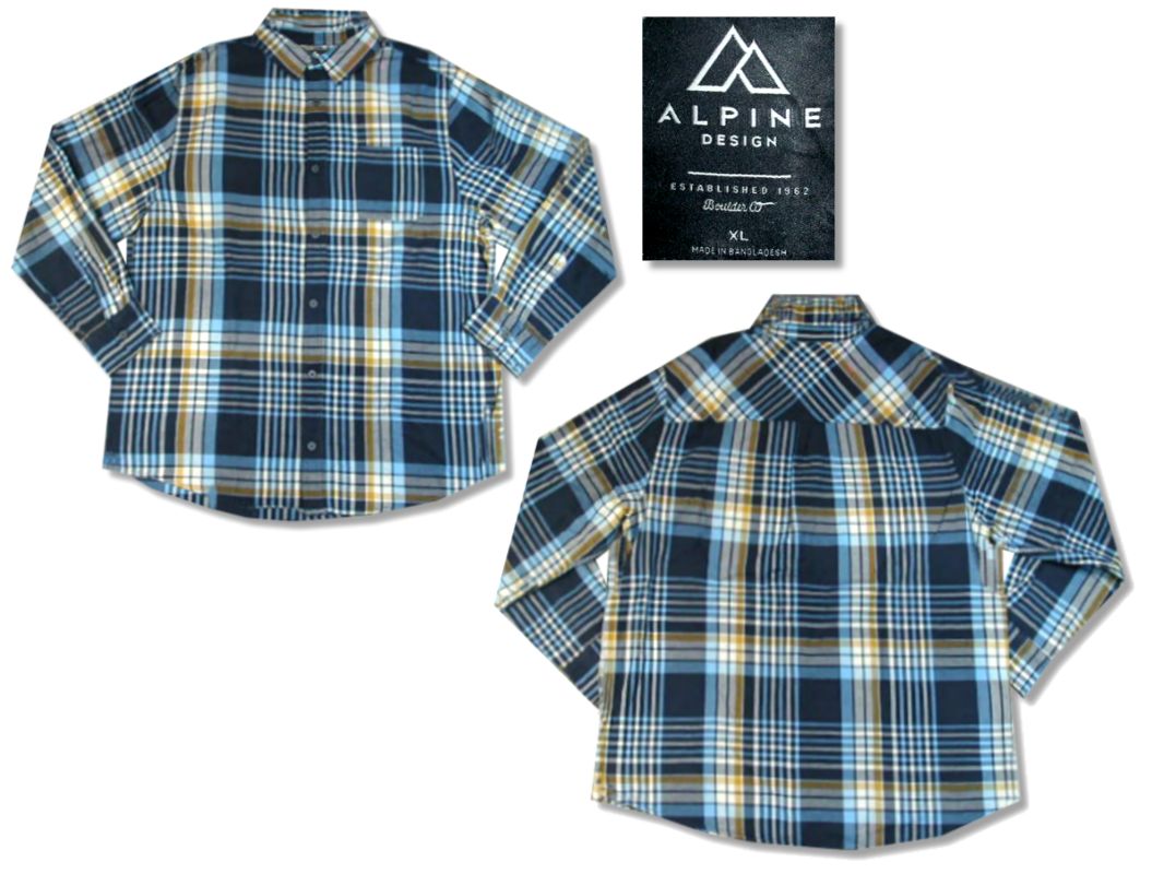 アルパインデザイン ネルシャツです。素材はコットン100% 着用感はありますが、特に目立ったダメージはありません。