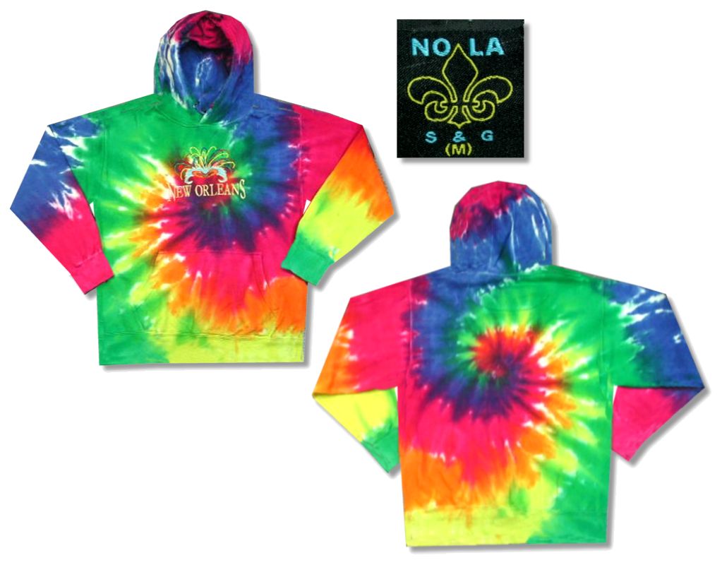 タイダイ染 スウェットパーカーです。素材はコットン50% ポリエステル50%になります。着用感はありますが、特に目立ったダメージはありません。