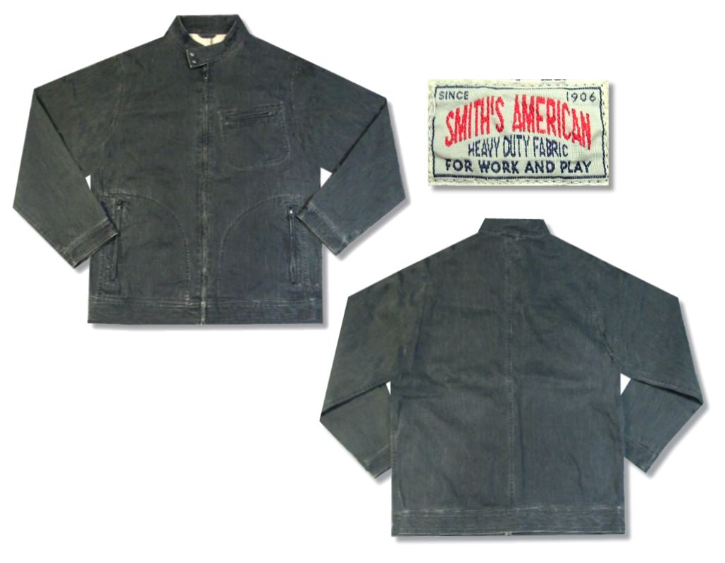 スミスアメリカン ワークジャケットです。素材はコットン97% ポリウレタン3%になります。着用感はありますが、特に目立ったダメージはありません。