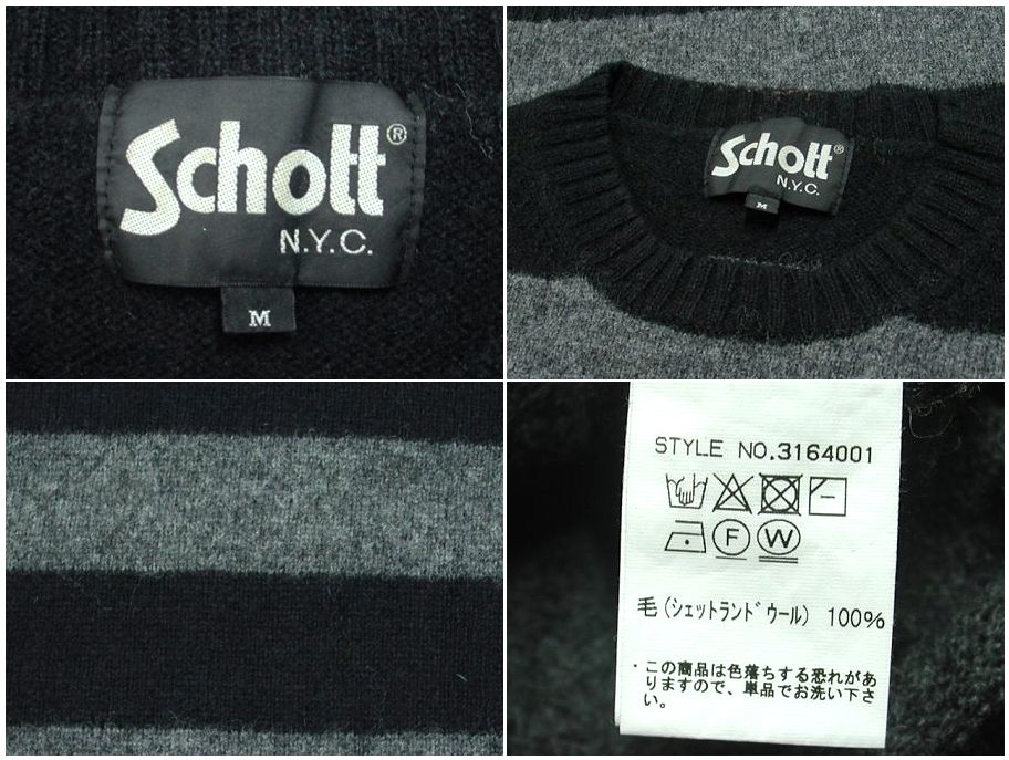 Schott ストライプ ウールセーターです。カラーはブラック×グレー 素材はウール100%になります。着用感はありますが、特に目立ったダメージはありません。