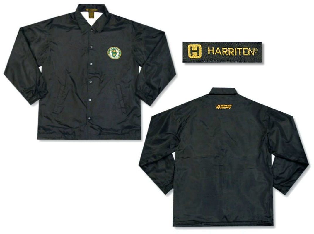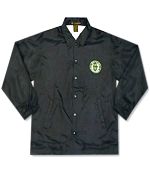 コーチジャケットです。カラーはブラックで素材はナイロン100%になります。着用感はありますが、特に目立ったダメージはありません。