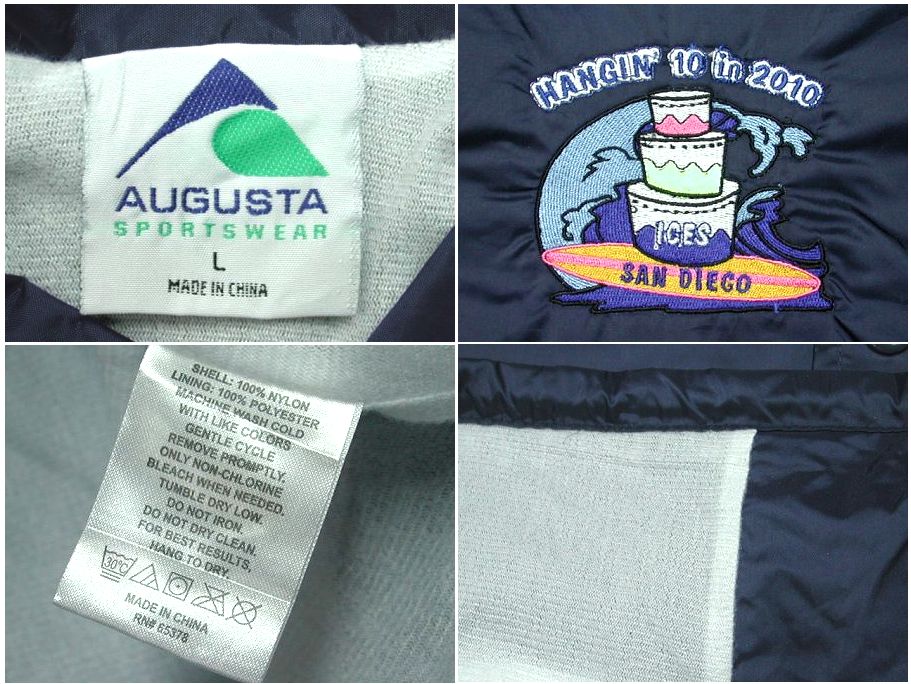 AUGUSTA コーチジャケットです。カラーはネイビーで素材はナイロン100%になります。着用感はありますが、特に目立ったダメージはありません。