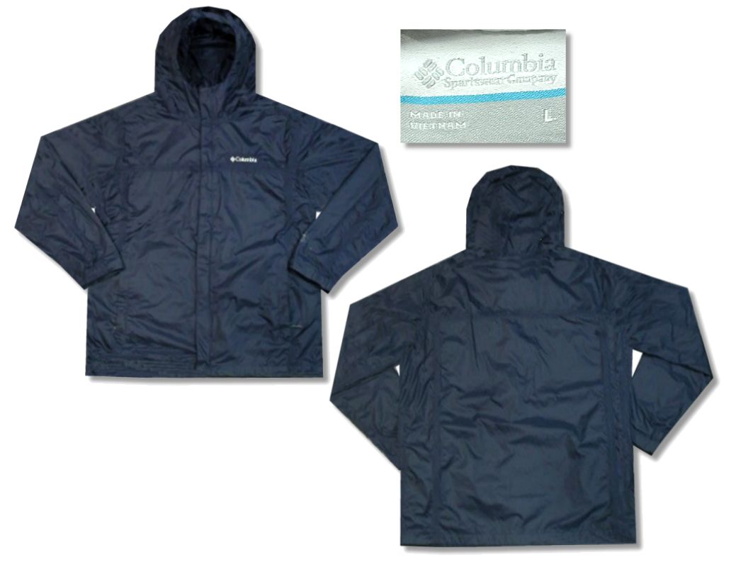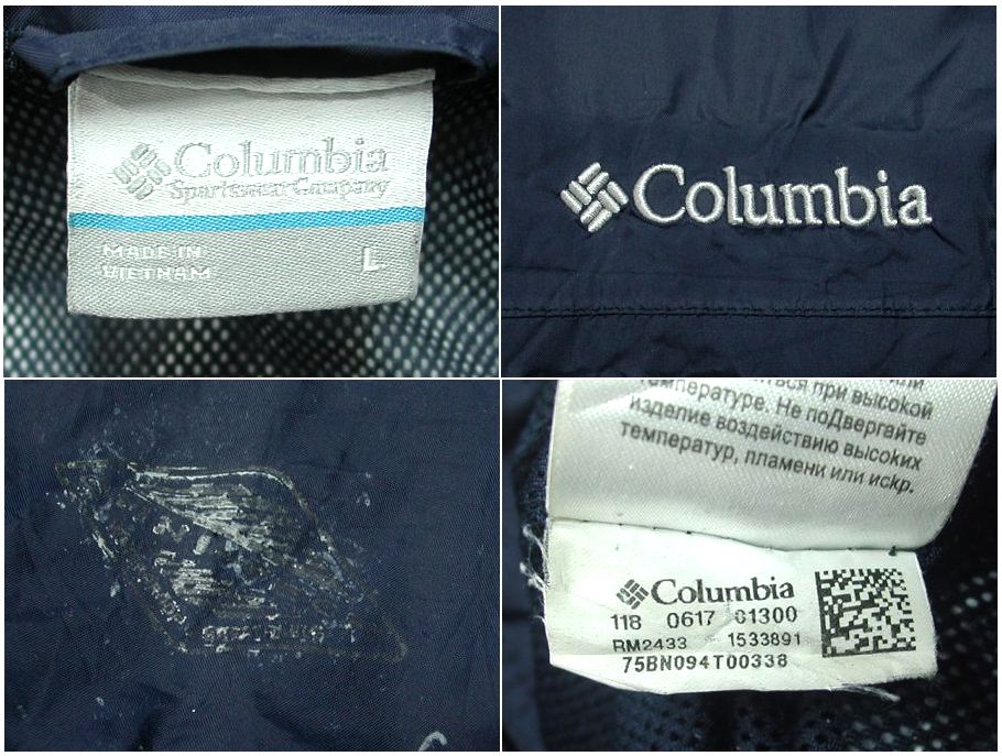 コロンビア ウインドブレーカーです。カラーはネイビーで素材はナイロン100%になります。着用感はありますが、特に目立ったダメージはありません。
