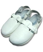 ABEBA rubber レザー メディカルサンダルです。アッパーはホワイトレザー。クロッグ型でヒールストラップも付いています。着用感はありますが、特に目立ったダメージはありません。