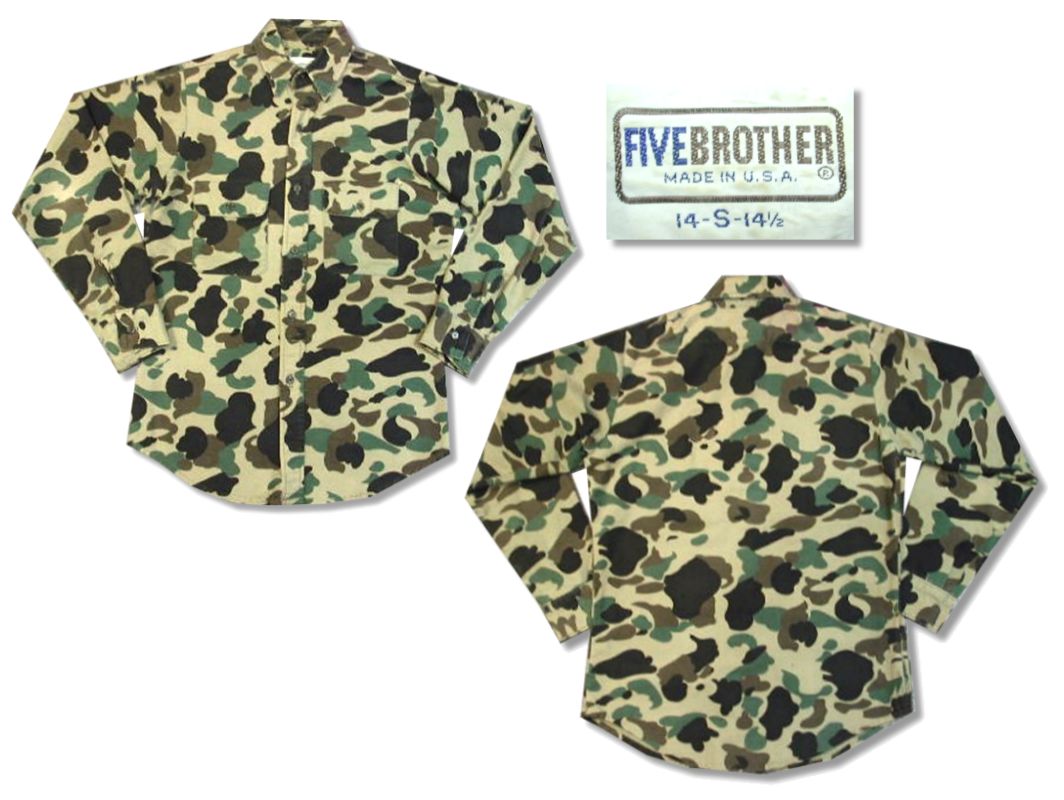 1980年代製 FIVE BROTHER ダックハンターカモ ネルシャツです。MADE IN USA 素材はコットン100% 状態は良好で特に目立ったダメージはありません。