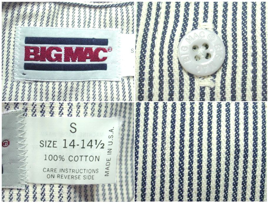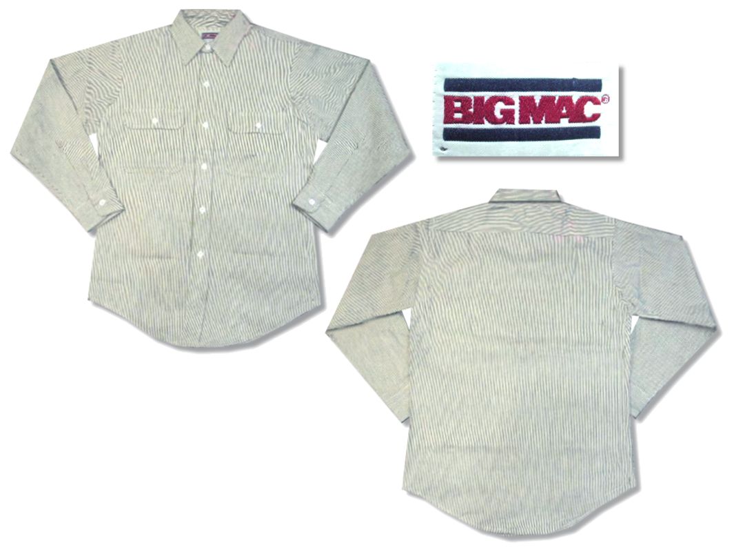 1980年代製 ビッグマック ヒッコリーストライプ ワークシャツです。MADE IN USA 素材はコットン100% 状態はデッドストックになります。サイズ表記はSですが、普段Mサイズを着用している方に丁度いいサイズ感です。
