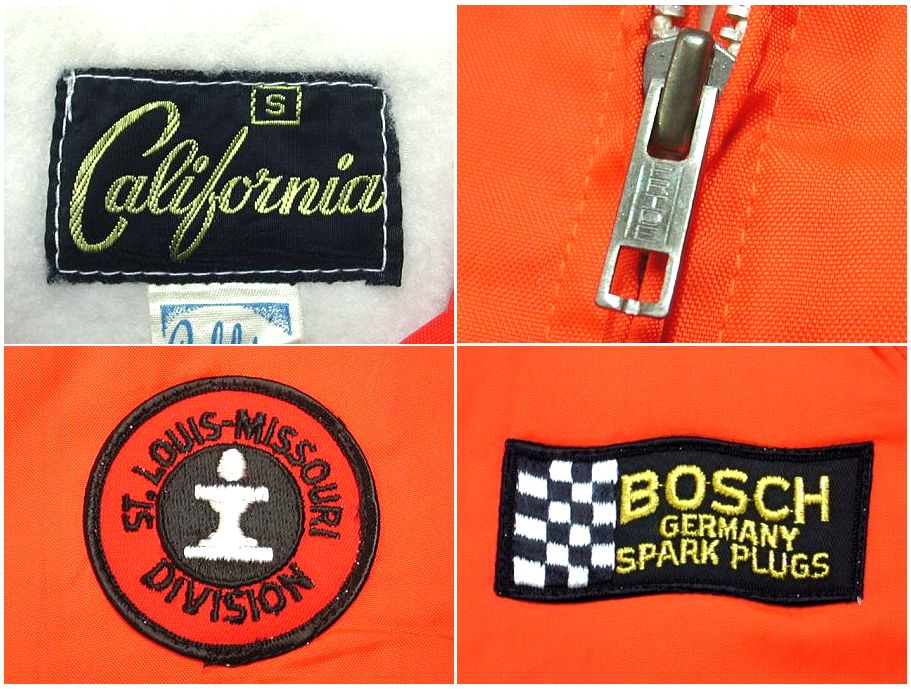 1970年代製 Carifornia レーシングジャケットです。ジッパーはPRIDE製。カラーはオレンジで素材はナイロン100%になります。着用感はありますが、特に目立ったダメージはありません。