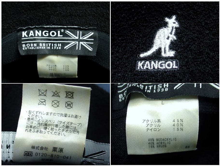 カンゴール サファリ バケットハットです。カラーはブラックで素材はモダクリル45% アクリル40% ナイロン15%になります。着用感はありますが、特に目立ったダメージはありません。