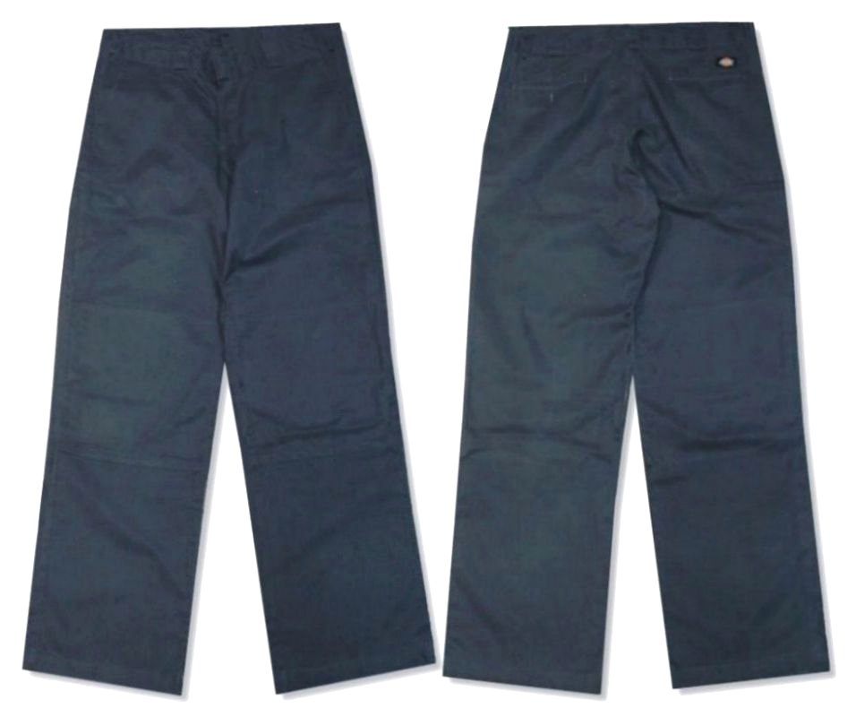ディッキーズ 874 ワークパンツです。カラーはネイビーで素材はポリエステル65% コットン35%になります。着用感はありますが、特に目立ったダメージはありません。