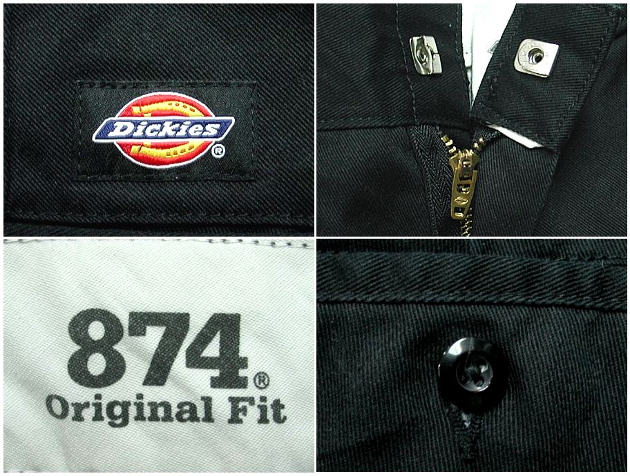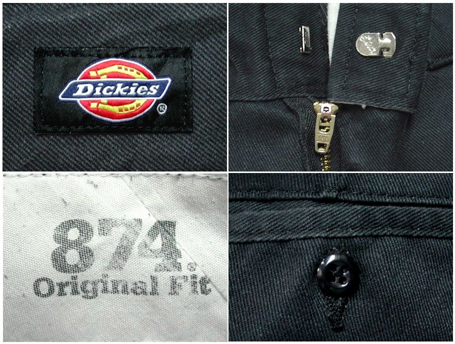 ディッキーズ 874 ワークパンツです。カラーはブラックで素材はポリエステル65% コットン35%になります。着用感はありますが、特に目立ったダメージはありません。