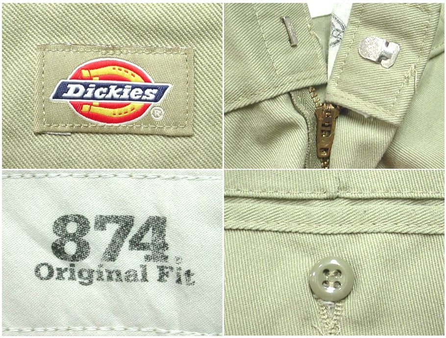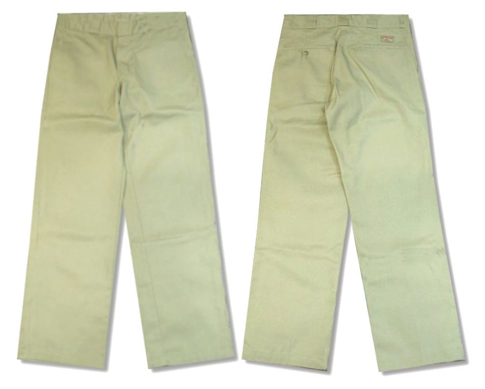 ディッキーズ 874 ワークパンツです。カラーはベージュで素材はポリエステル65% コットン35%になります。着用感はありますが、特に目立ったダメージはありません。