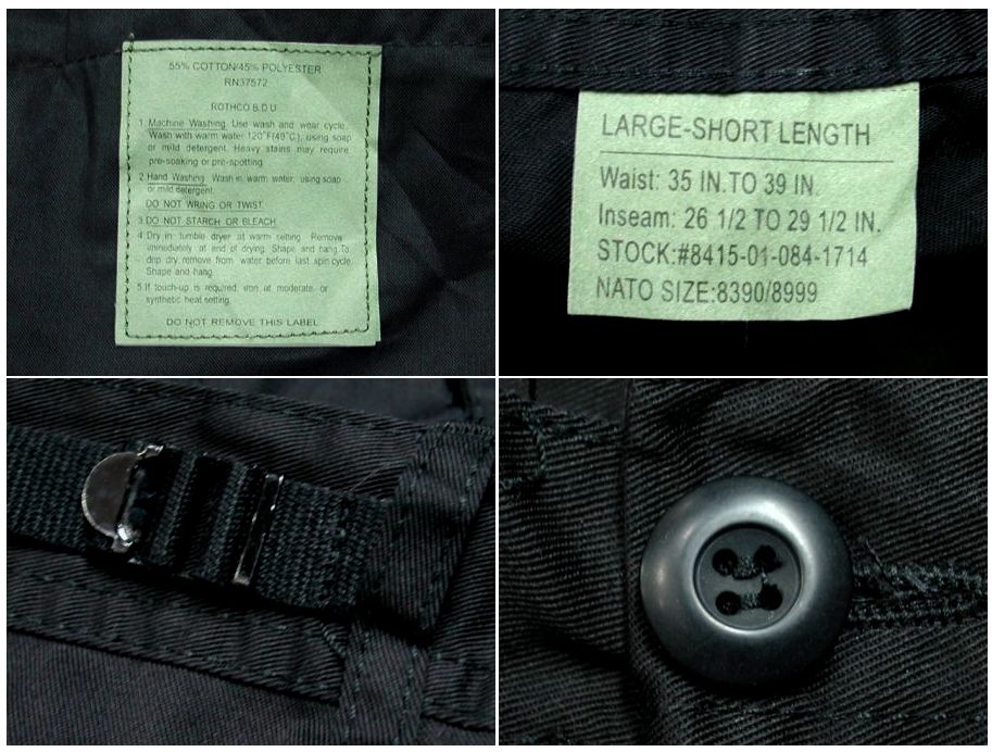 ロスコ カーゴパンツです。カラーはブラックで素材はコットン55% ポリエステル45%になります。状態は良好で特に目立ったダメージはありません。